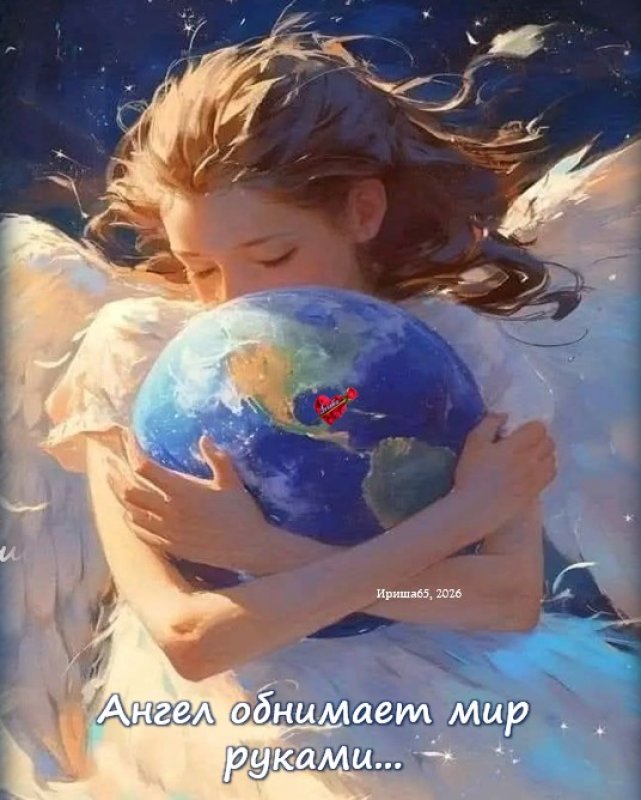 Ангел обнимает мир руками,