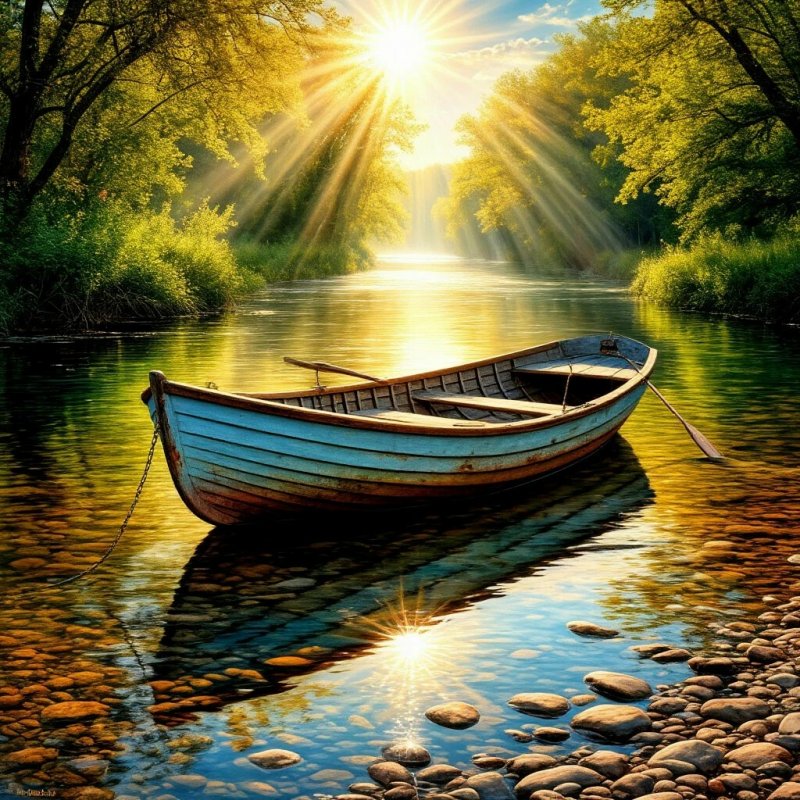 на камнях, лучи...