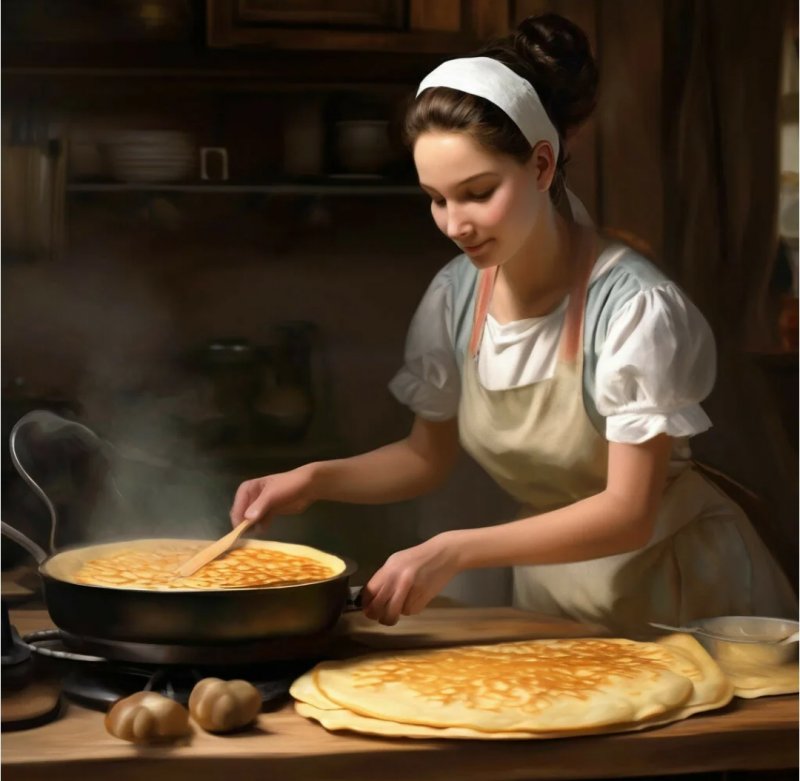Печёт нам вкусные блины,