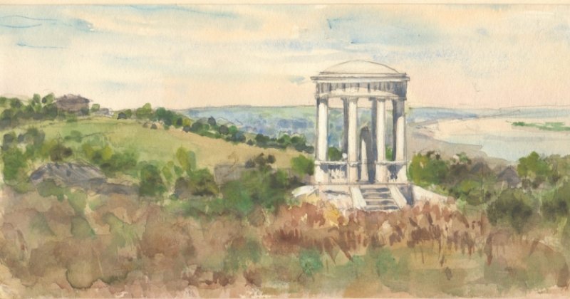 Пишет в небе акварель