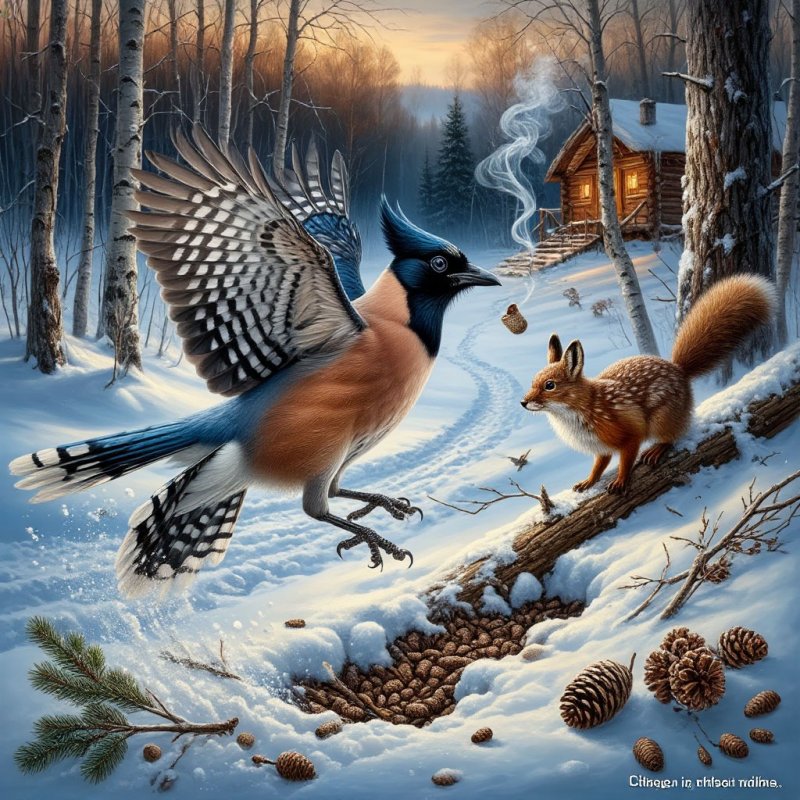 С ветки вспорхнула любопытная сойка.
